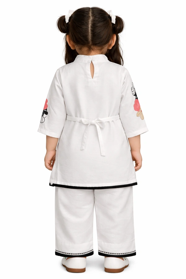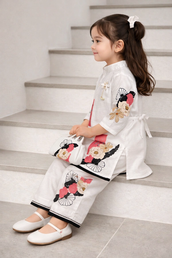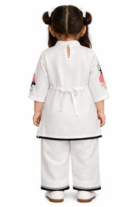 Stylish kids white designer dress featuring a beautiful front design with a clean plain back and elegant waist ribbon bow. Perfectly crafted for parties, birthdays, and festive occasions. Soft, breathable fabric ensures all-day comfort for kids. Modern side-profile fashion look ideal for premium e-commerce listings and photoshoots.